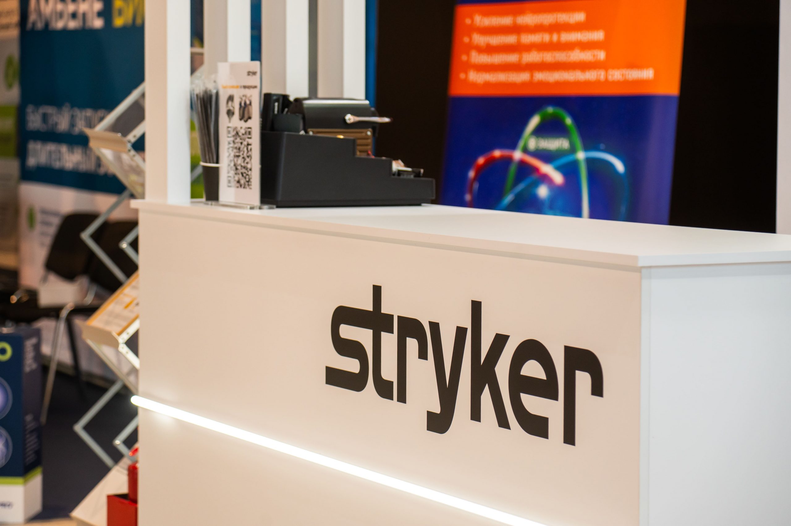 Stryker — мировой гигант, который не просто идёт в ногу со временем, а задаёт темп всей отрасли. Для них мы создали эксклюзивный стенд, который взрывает восприятие и подчёркивает их лидерство.